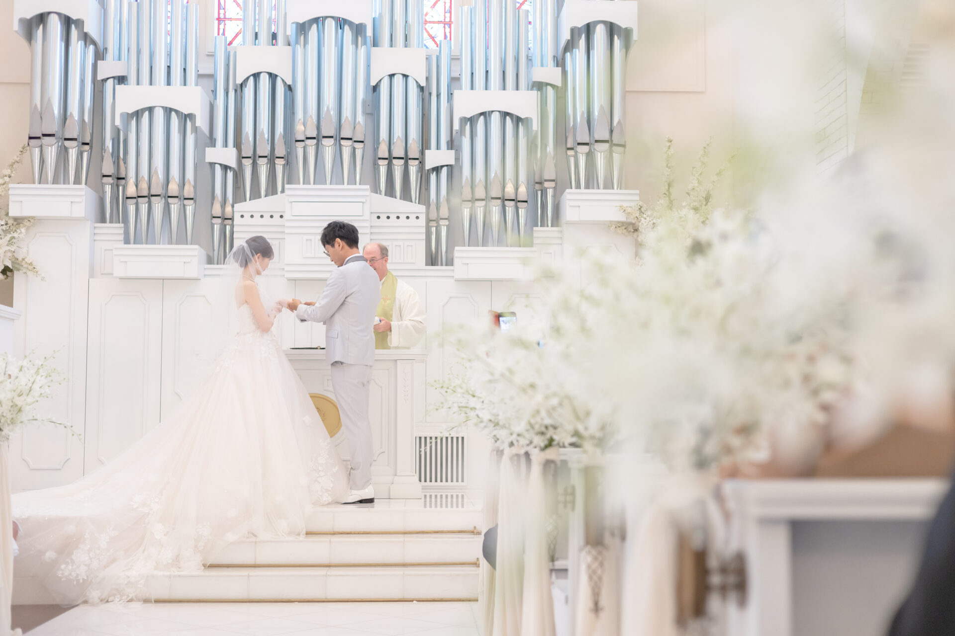 明るい大聖堂は、天井が高く開放感があり、ステンドグラスもとても綺麗で、理想の結婚式を叶えることができました。